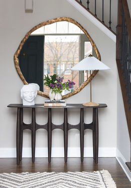 Transitional Home Renovation: We enhanced the family room with a kitchen extension, featuring stylish green paint, new countertops, and backsplash. The powder room received a touch of elegance with wallpaper, a new vanity, and mirror. This cozy yet updated space offers a perfect blend of modern and classic elements for a welcoming atmosphere.